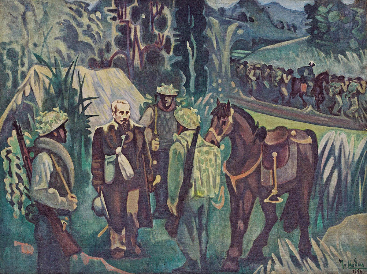 Rời lều cỏ Bác tiếp tục hành quân (1985), Sơn dầu, 130 x 160 cm, Nguyễn Trọng Kiệm